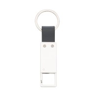 couro sintético. Chaveiro metálico com chapa central de alumínio