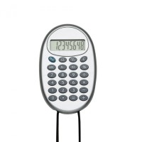 Descrição: Calculadora plástica oval de 8 dígitos prata com cordão e acessórios coloridos, necessita de 1 bateria AG10 para funcionamento (acompanha).