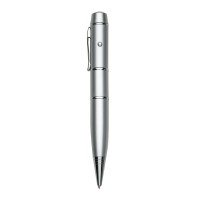 Descrição: Caneta pen drive 4GB metálica com laser e esferográfica. Clip de metal e botão do laser com lacre, ao desrosquear anel abaixo do clip abre compartimento das baterias(acompanha 3 LR1130) e ao desrosquear o anel abaixo abre compartimento do pen drive. Para utilizar a esferográfica basta rotacionar a ponteira.