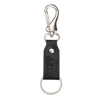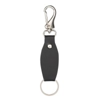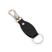 Chaveiro em couro sintético, com argola e mosquetão.