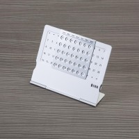 Descrição: Calendário permanente de metal com base dobrável. Possui