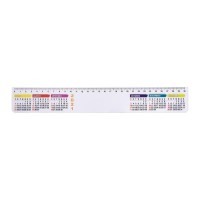 Descrição: Régua plástica de 30cm com calendário. Impressa em papel