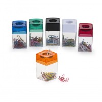 Descrição: Porta clipes com tampa magnética colorida, acompanham clipes coloridos.