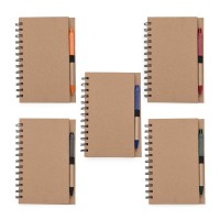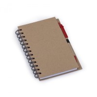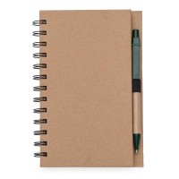 Descrição: Bloco de anotações ecológico com caneta e autoadesivos.
