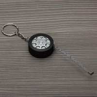 Descrição: Chaveiro trena 1 metro formato pneu brilhante, material emborrachado
